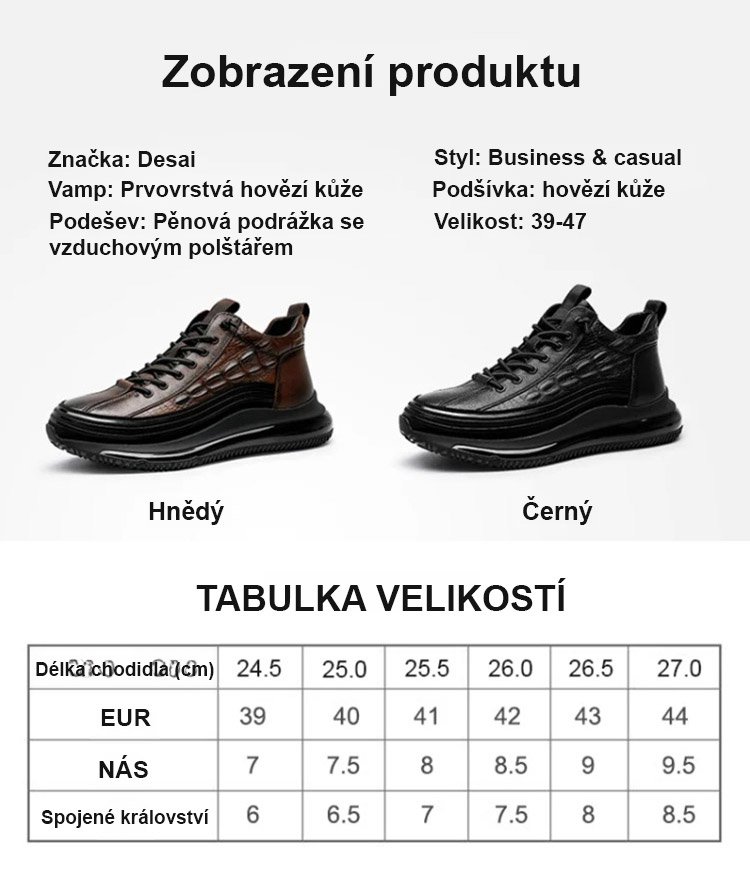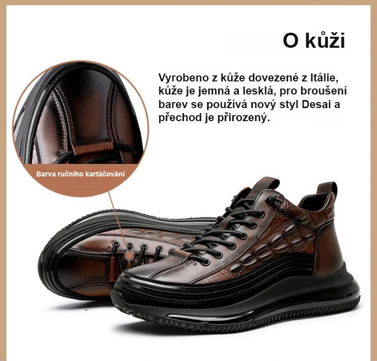 Italské luxusní pánské tenisky s krokodýlím vzorem a silnou podrážkou.