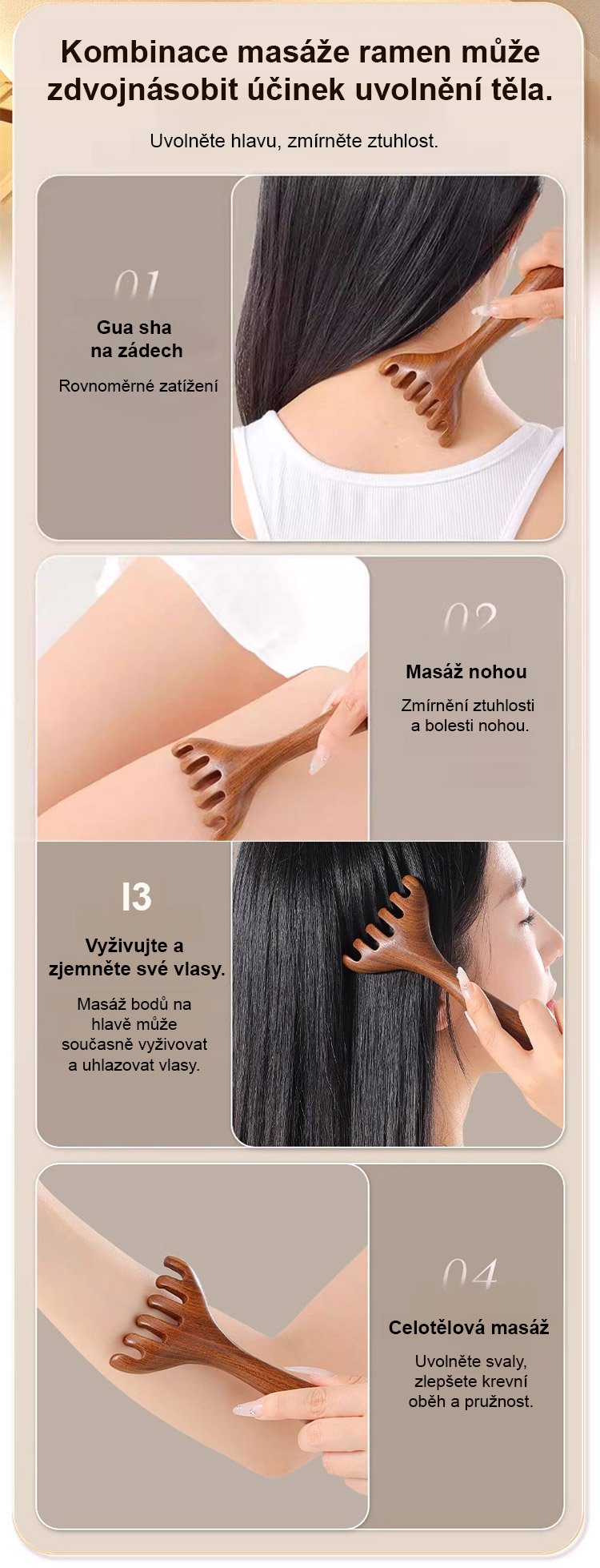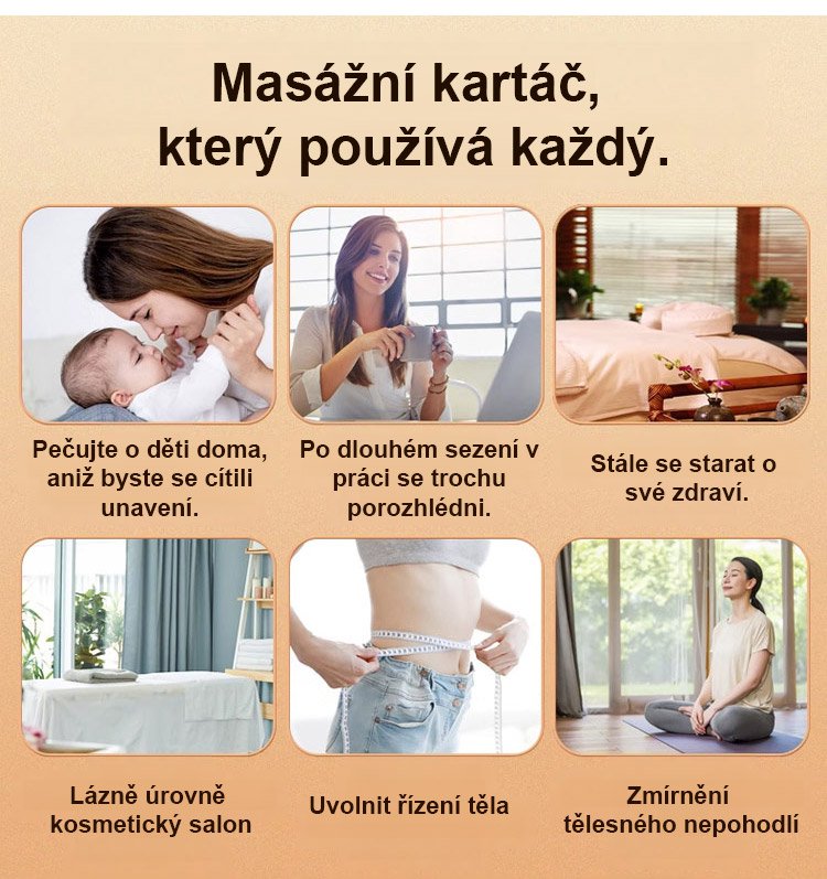 Může být použit po celém těle, bagrovat meridiány, podporovat krevní oběh a uvolnit celé vaše tělo