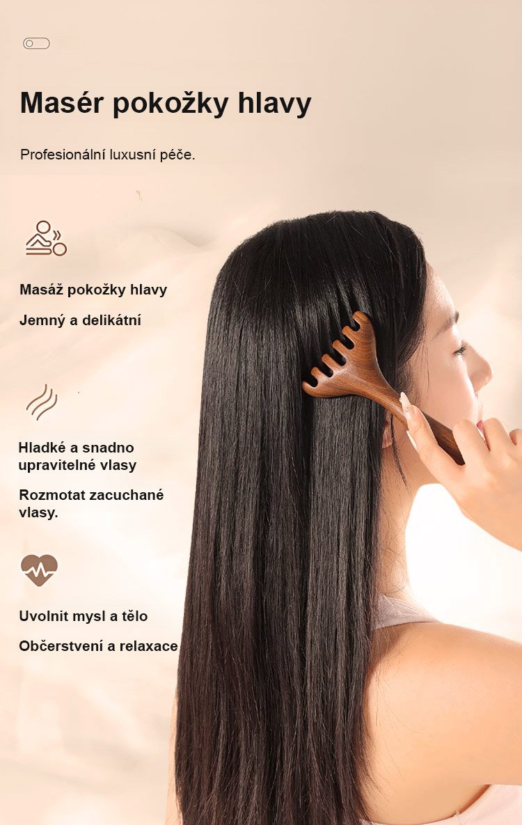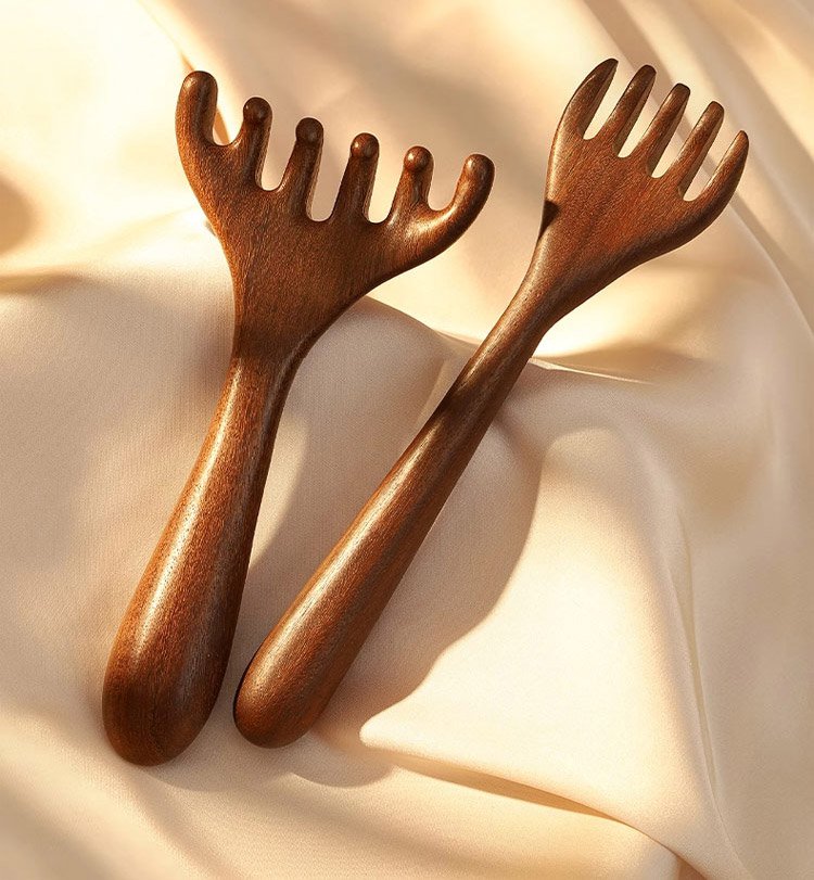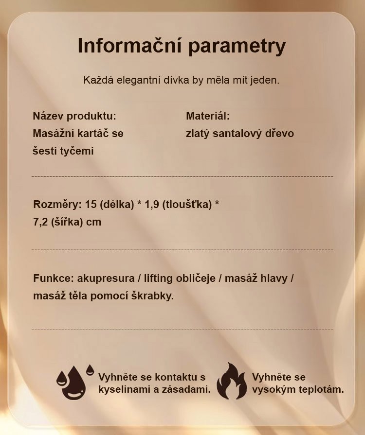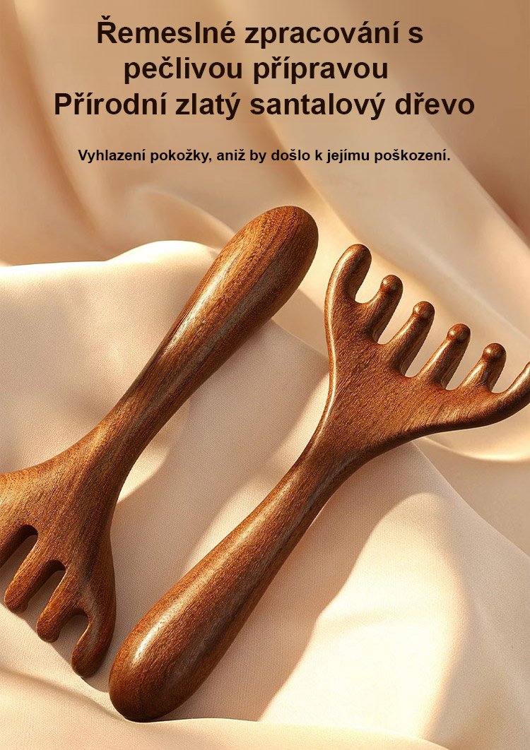 Zlatý hedvábný santalový dřevěný masážní hřeben meridián se šesti drápy