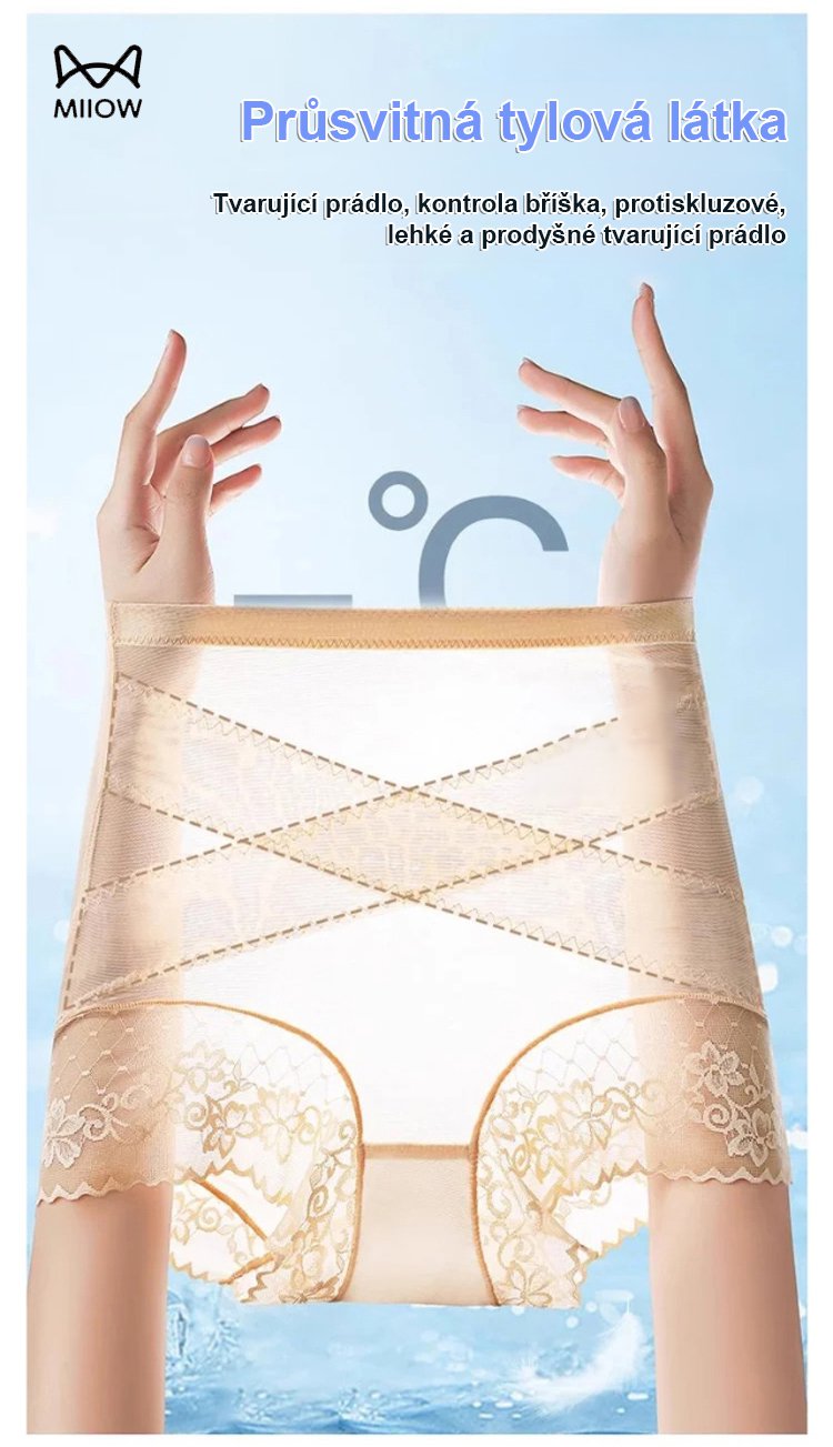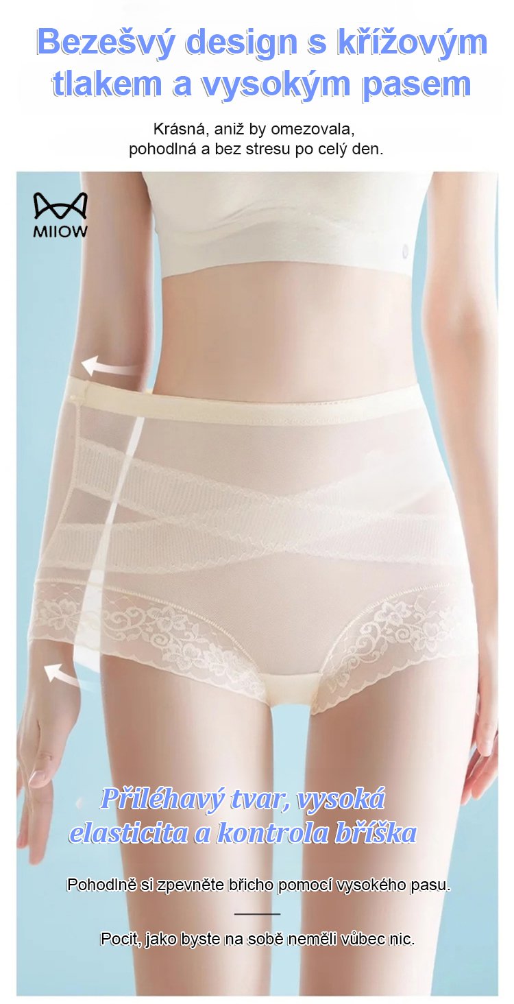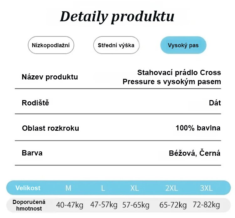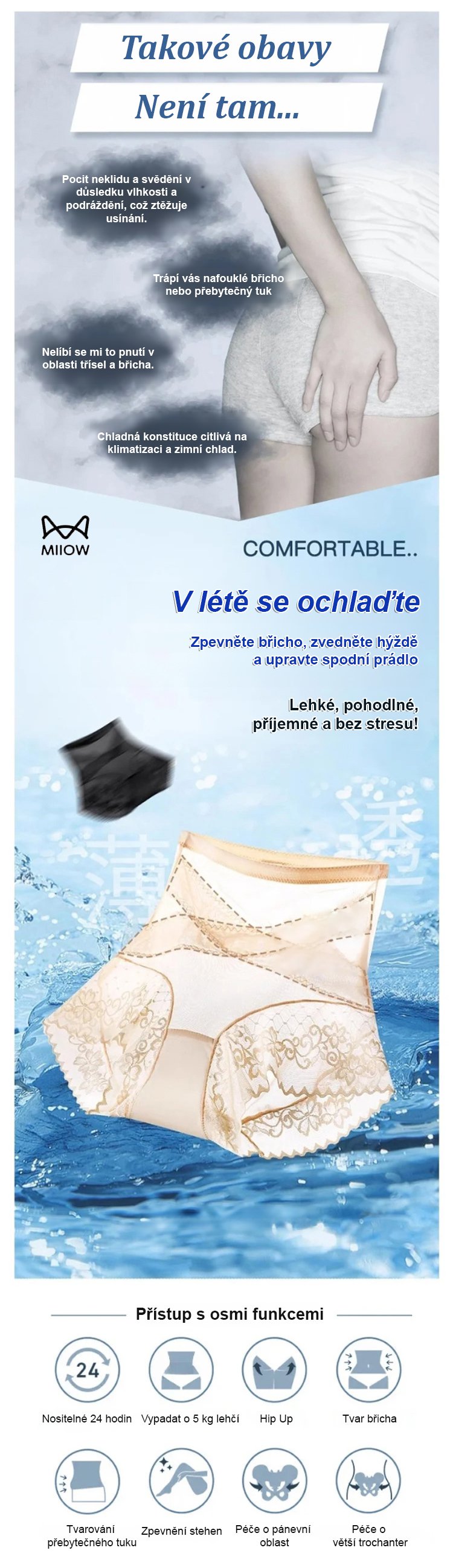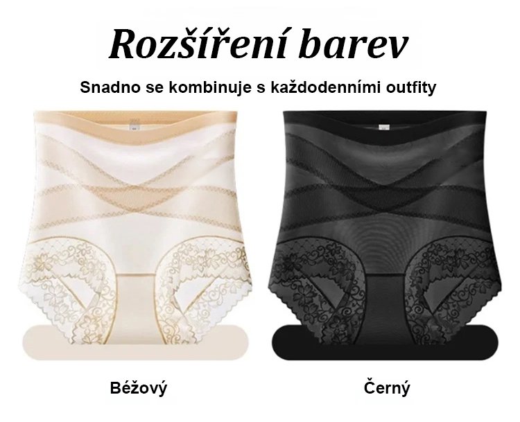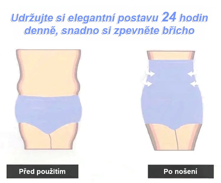 Konstrukce s vysokým pasem + funkce korekce pánve pro dosažení zeštíhlujícího efektu až 5 kg v oblasti břicha a dokonce i vytvoření průhledné pokožky!