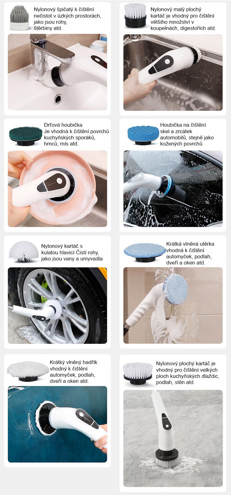 Bezdrátový elektrický čisticí kartáč s dlouhou rukojetí
