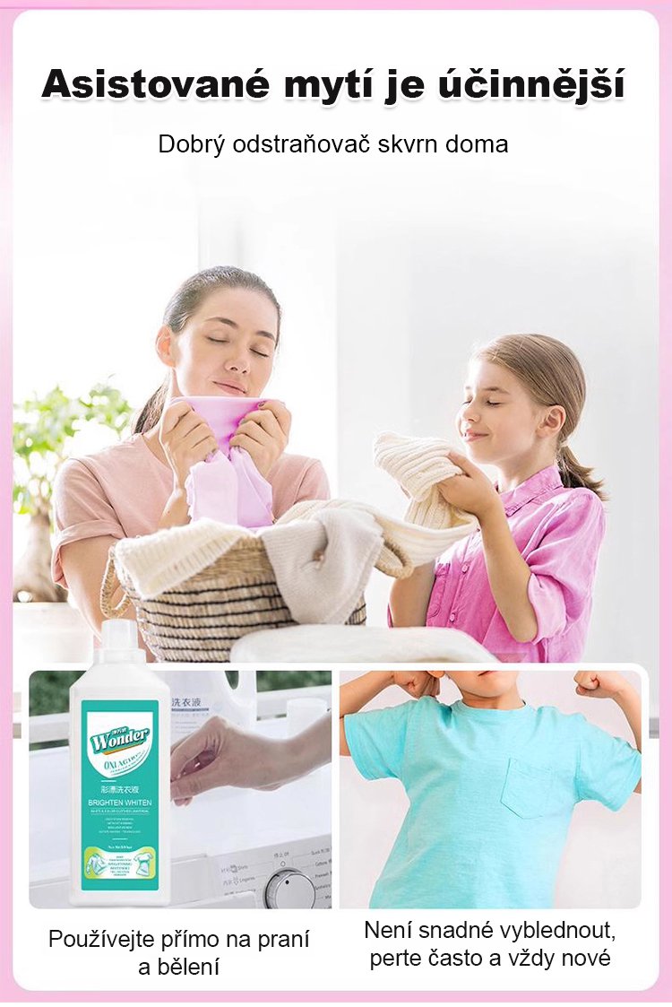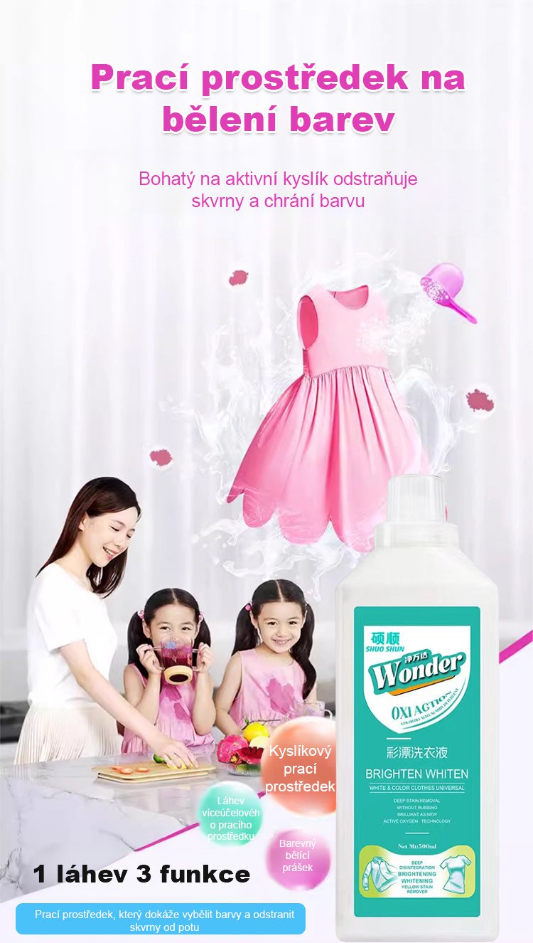 Jít na zesvětlení a rozjasnění aktivním kyslíkem čisticí kapalina na barevné prádlo